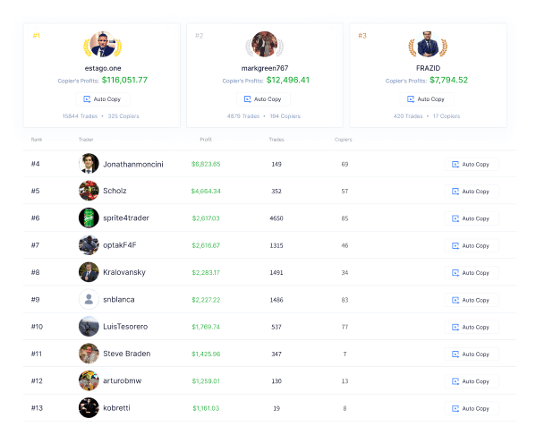 try following the strategies of our Lead traders. Mirror their trading activity.